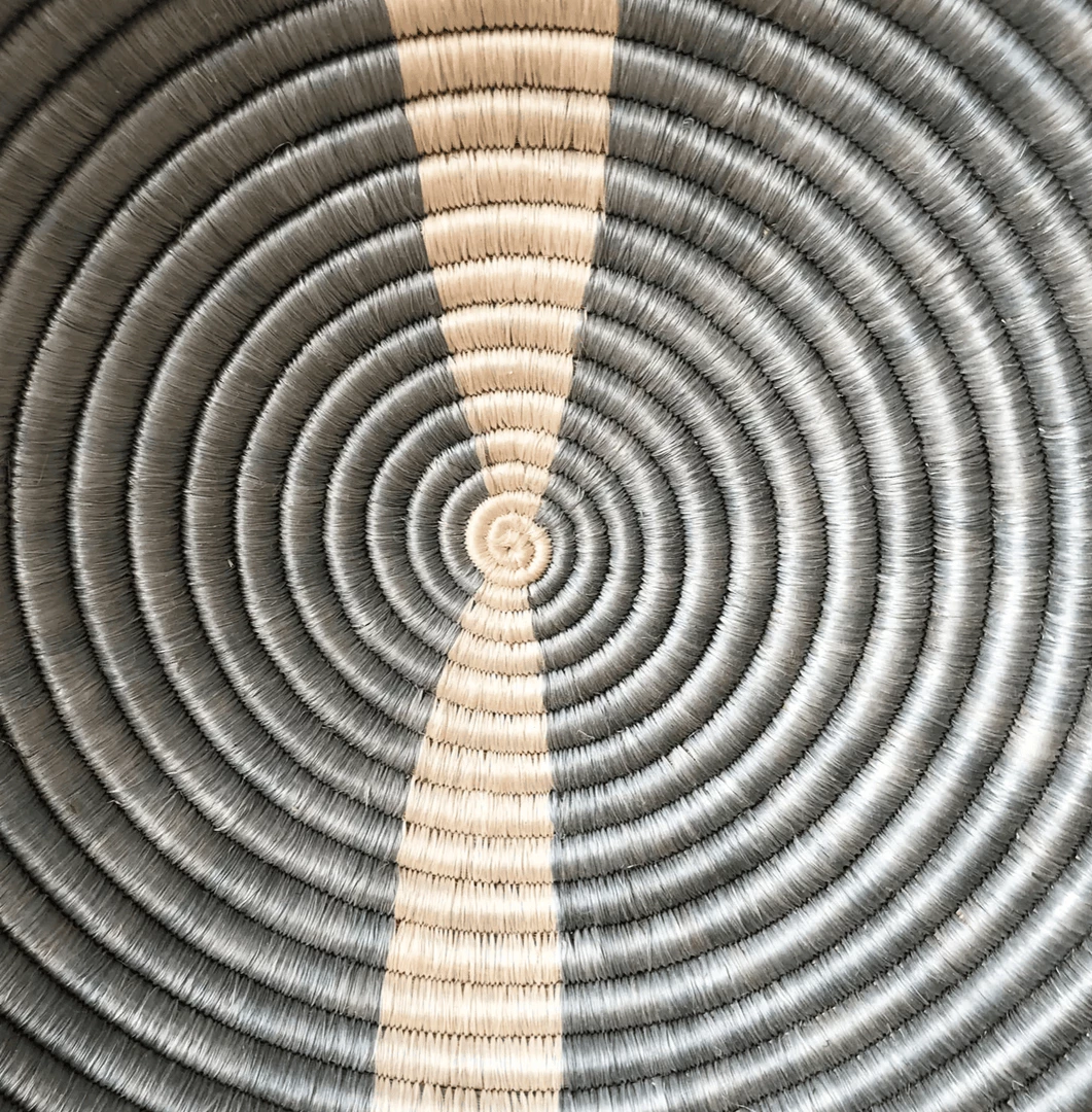 This sisal, woven basket is approximately 12″ in diameter and woven by artisans in Gitarama, Rwanda. The sisal is woven around sweetgrass, a fragrant grass. In addition to making a beautiful table display, these baskets can also be hung as art with the loop on the back.