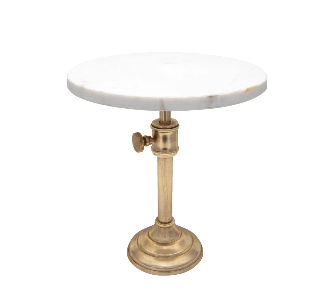 This adjustable cake plate elevates any display to the desired level with a brass stand and marble platter.Â