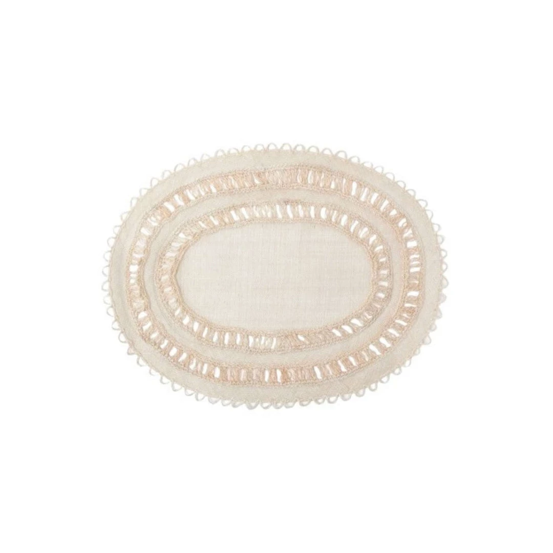 Woven abaca is crocheted to create the spiral design, bringing artisan-level craft to a chic bohemian look.