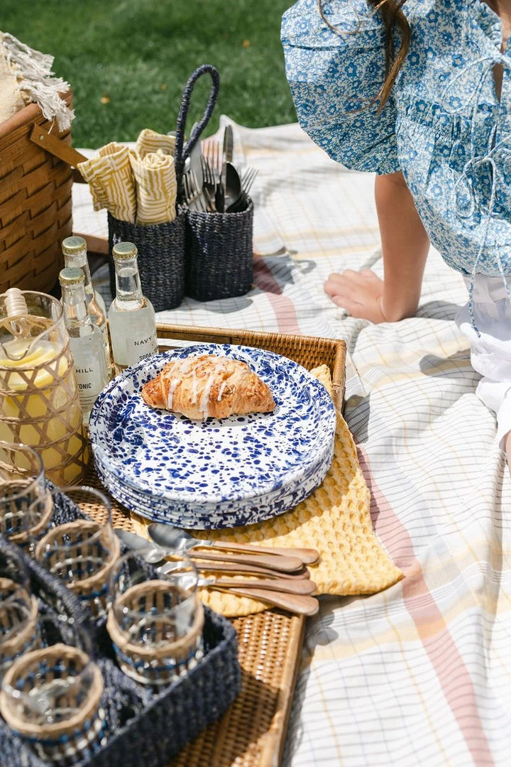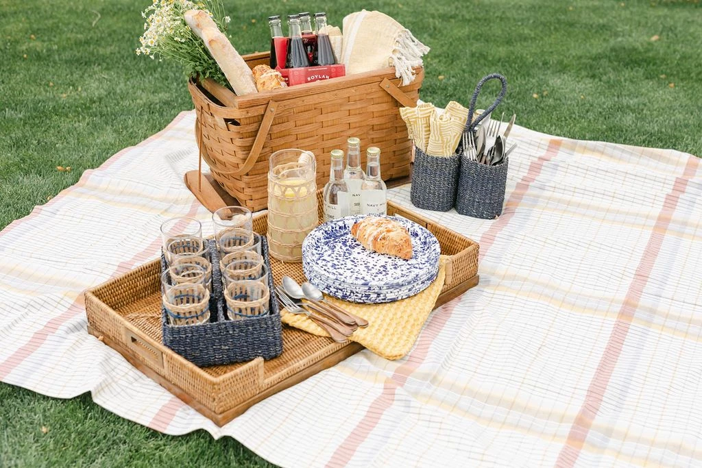 Hand-woven in natural abaca fibers, this caddy keeps the buffet or tabletop enticingly well-organized.