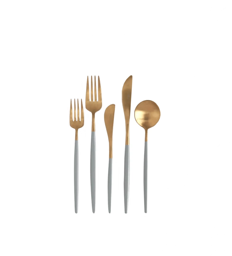 Grey with gold flatware in a sleek modern design brings elegance to the table.Â