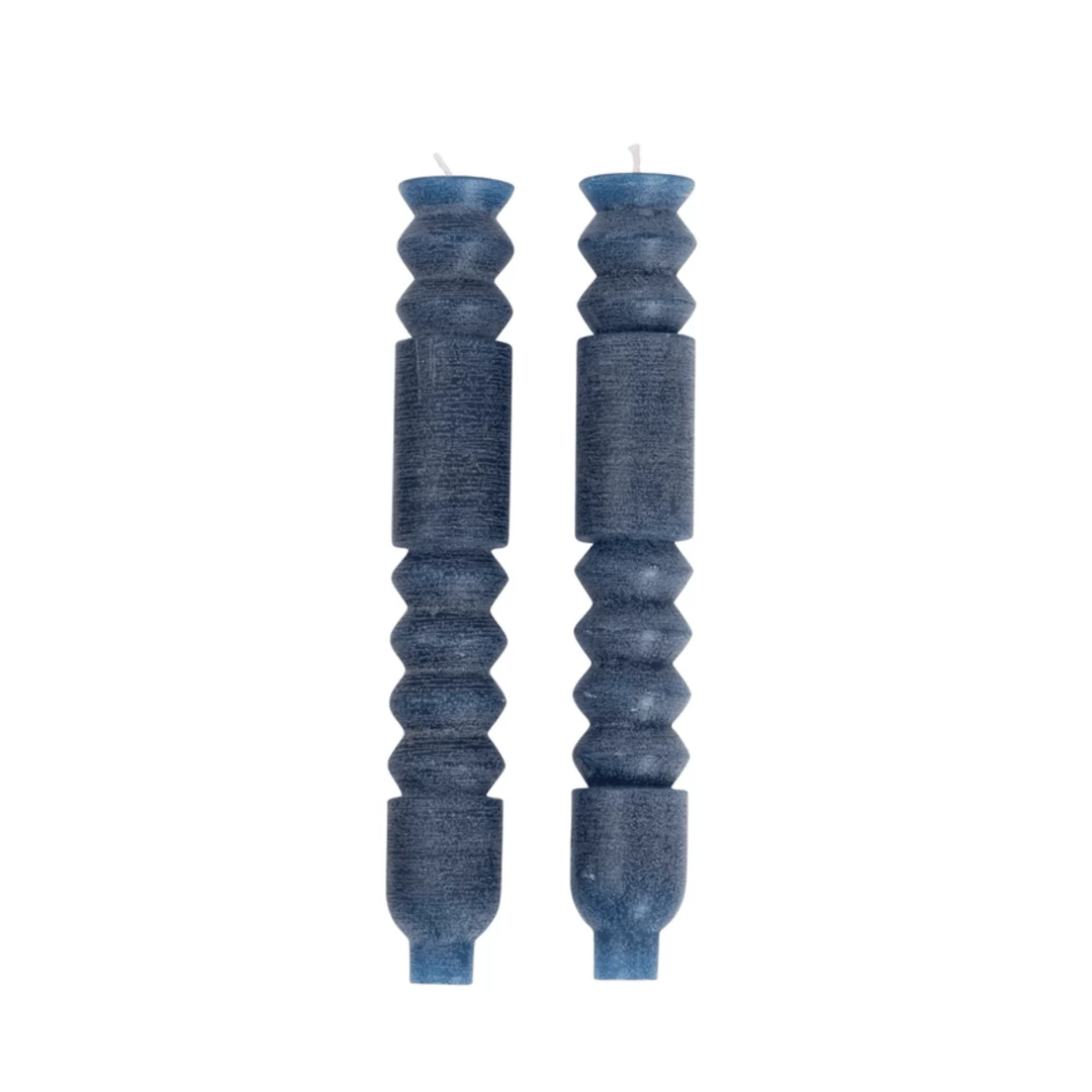 These unscented taper candles bring warmth and light to any setting. The unique spindle design catches the eye and adds a bold touch to a classic piece.Â