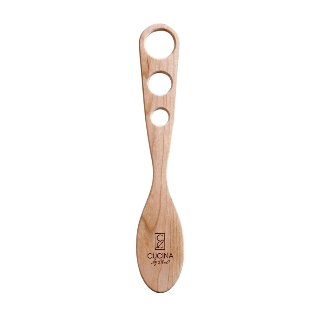 This multipurpose cooking utensil with fork-like teeth is ideal for gently stirring, draining, and serving pasta. The holes in the handle serve as a portion guide for spaghetti. Safe for use on nonstick cookware & occasionally coat with mineral oil to keep it looking its best.Â