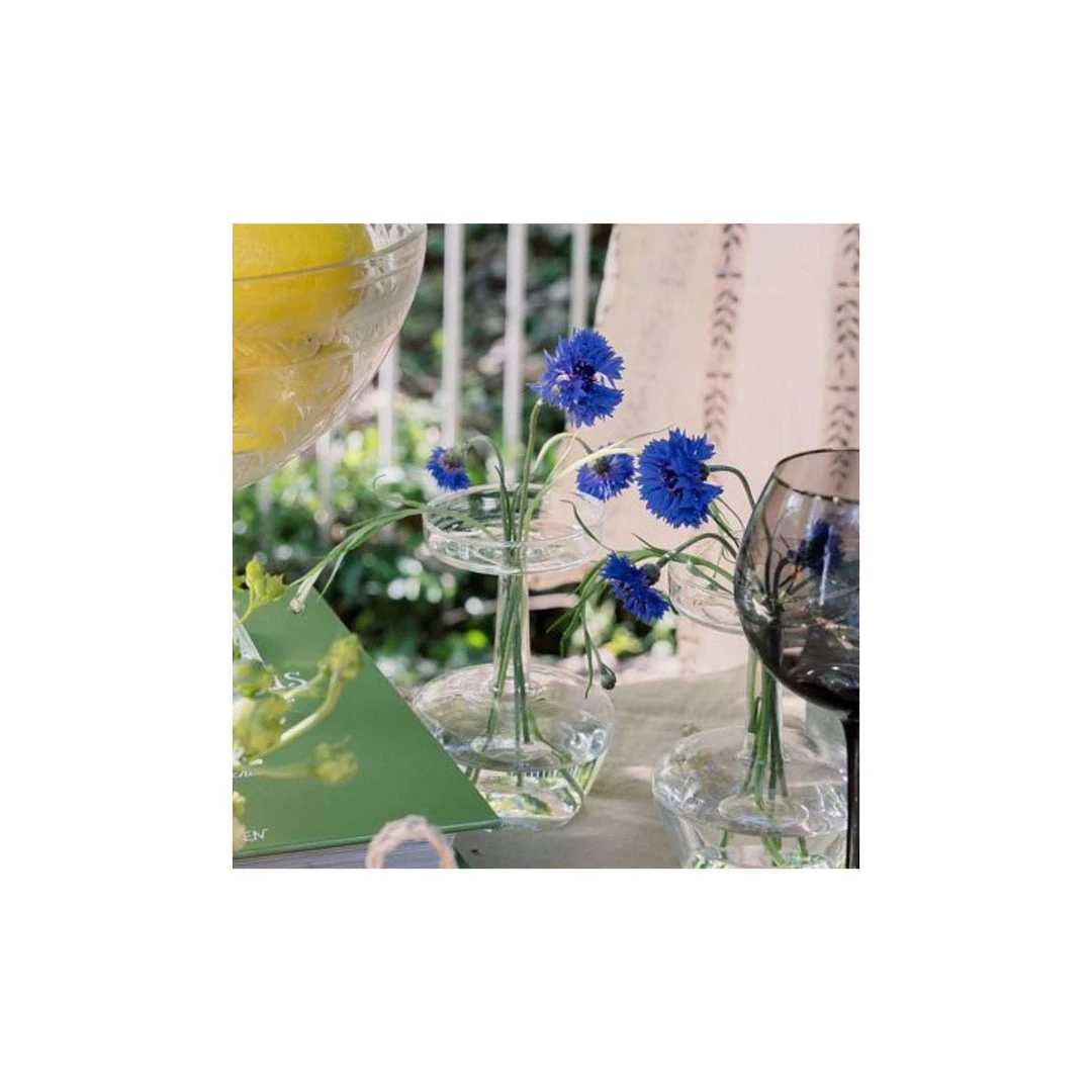 This multi-use hand turned glass vase, taper or tea light candle holder. Beautiful for a single stem or a small flower arrangement. Clean lines are perfect for a minimalist design.Â