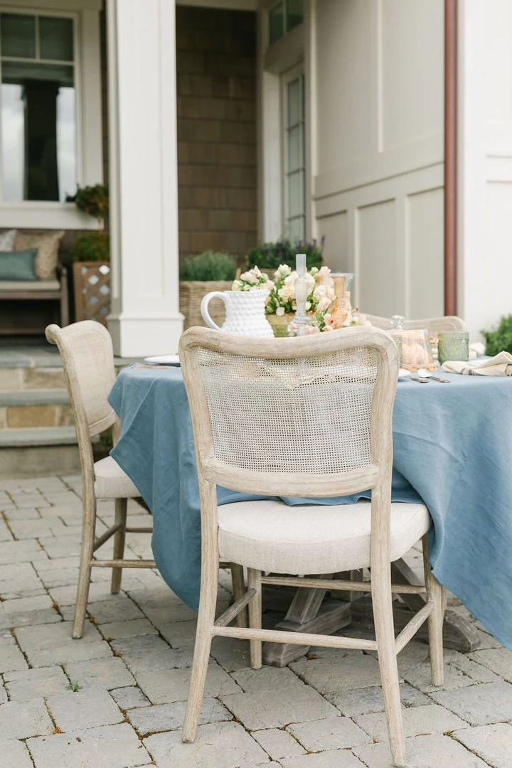 This dining chair combines charm, comfort and timeless design all in one versatile piece. Featuring a solid wood frame, cane back and leg stretchers.