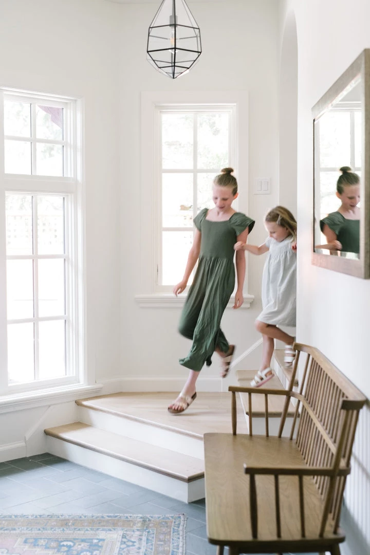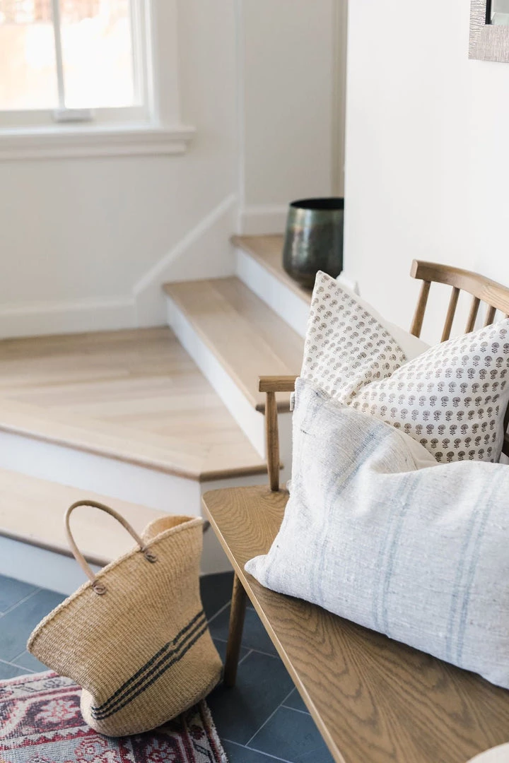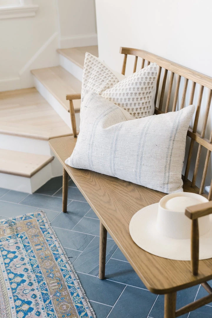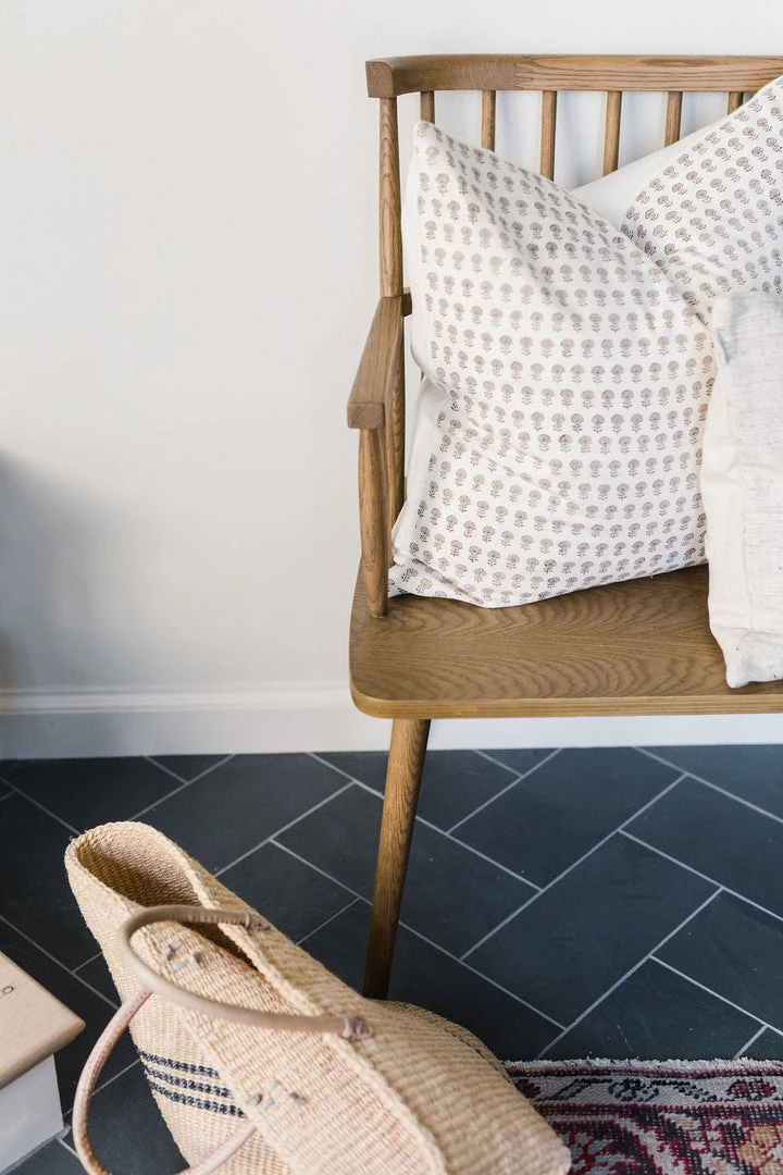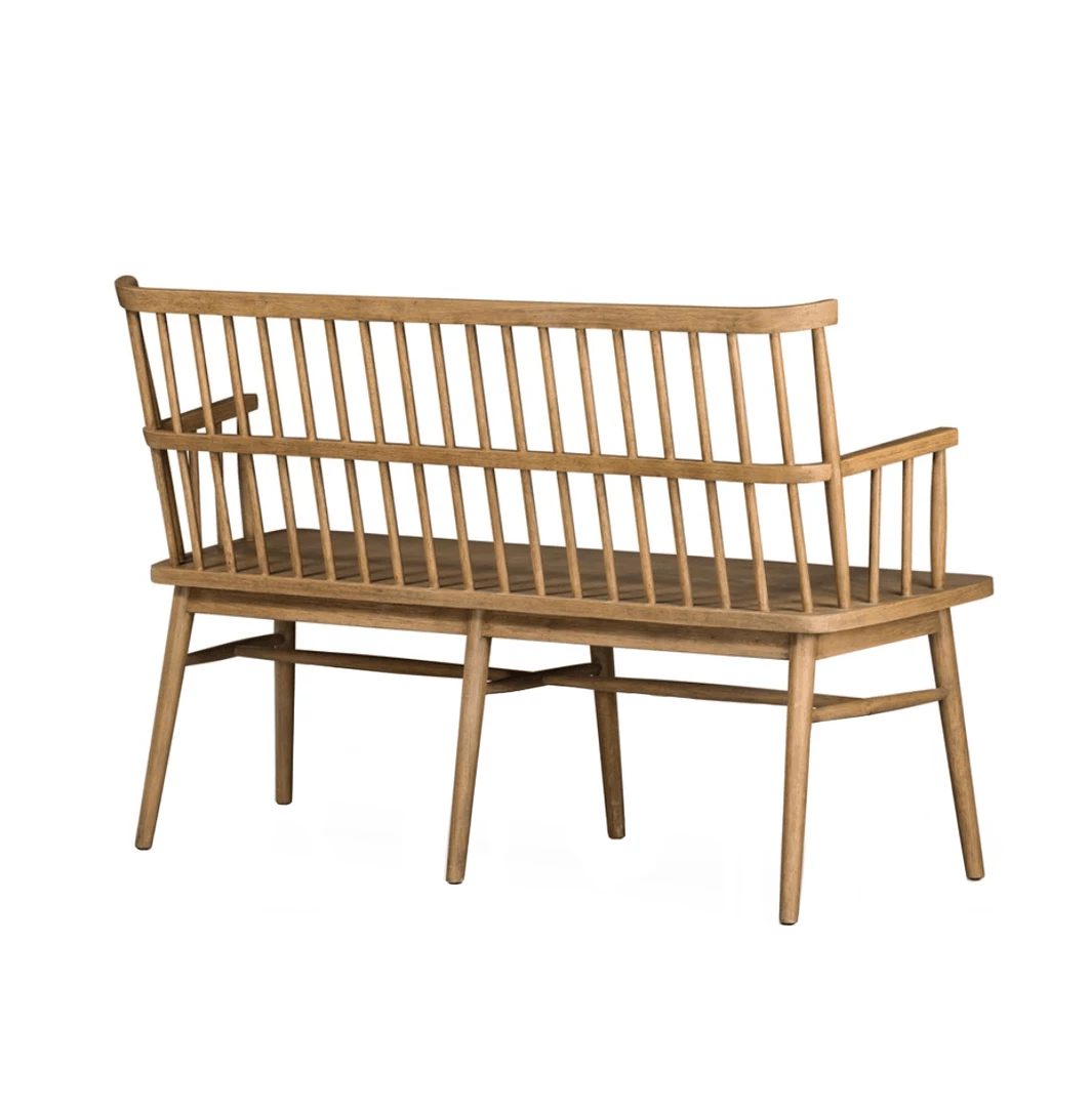 This fresh take on Windsor-style seating has a sculptural silhouette and sandy finish, highlighting the oak’s natural luster.