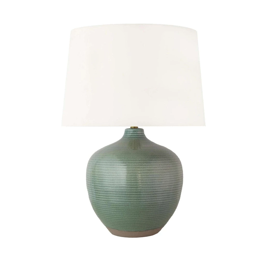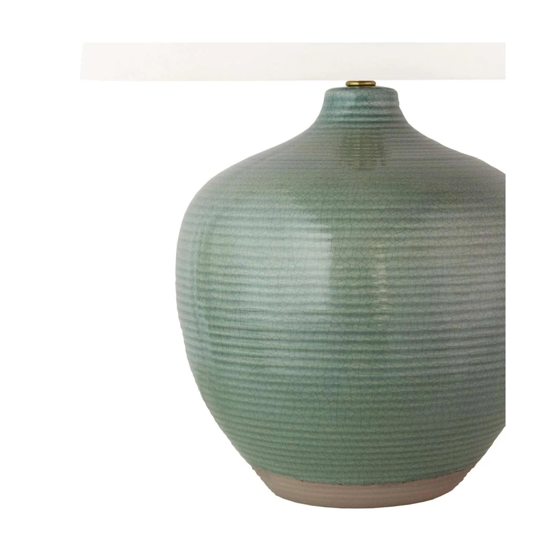 This pacific green table lamp features a ceramic body with a crackle glaze finish and an exposed ceramic base. This piece is proudly handcrafted in the USA.Â