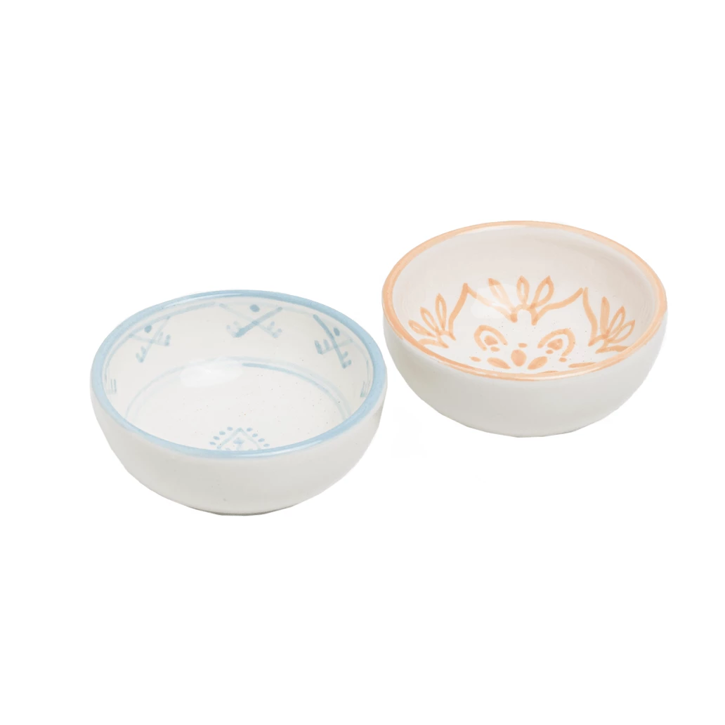 Bring a special touch to your table with our set of Henna Bowls. Handmade by Tunisian artisans in the beachside town of Kelibia, each bowl is handcrafted and hand-painted, employing local makers and keeping traditional Tunisian techniques and symbols alive.