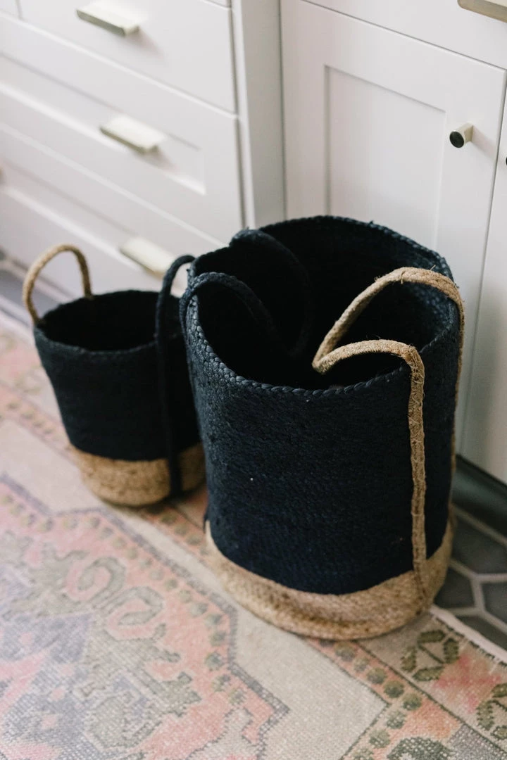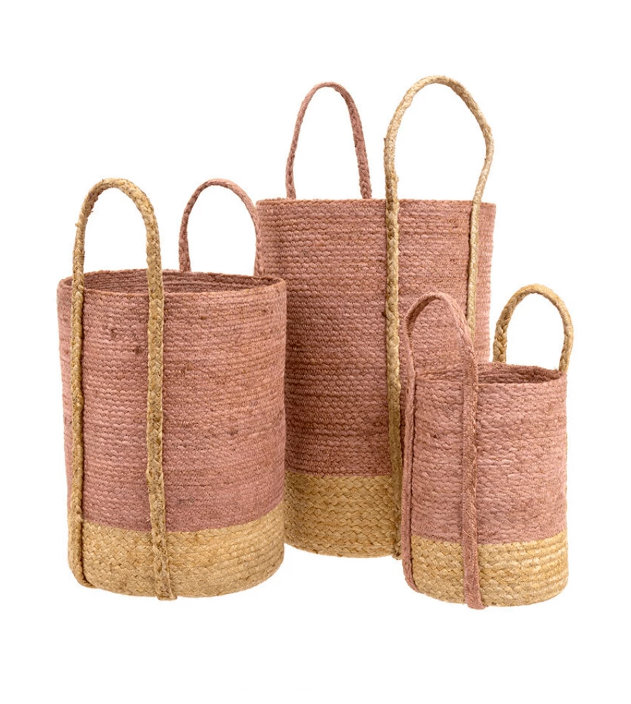 Our Gibson baskets are handwoven from eco-friendly jute. Tough but sophisticated with their extended handles and contrast coloration, they provide practicality and a polished rustic look.