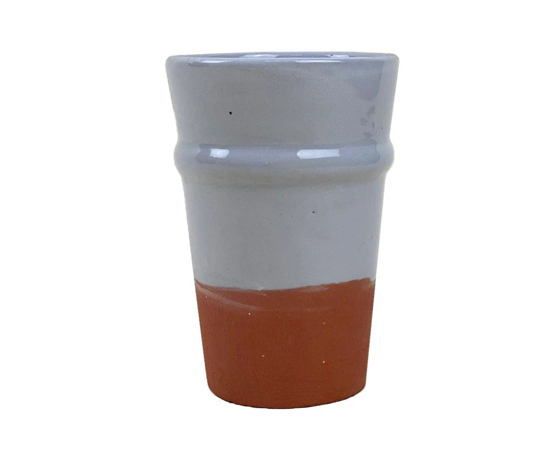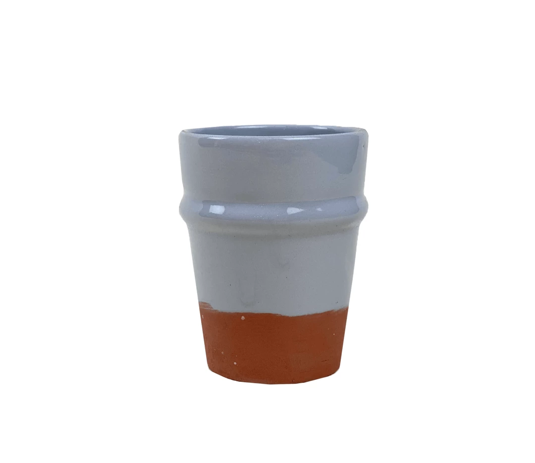 Terra cotta artisan teacup made at the Potters Hill in Safi, Morocco. They are made in the traditional way of the past 500 years hand thrown on a potter’s wheel to exacting symmetry, dried in the sun, fired and hand-decorated. Â