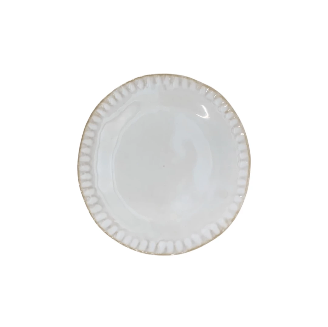 Handmade plate with thumb print details at edge. Fluted shape. Perfect for dessert or appetizers.