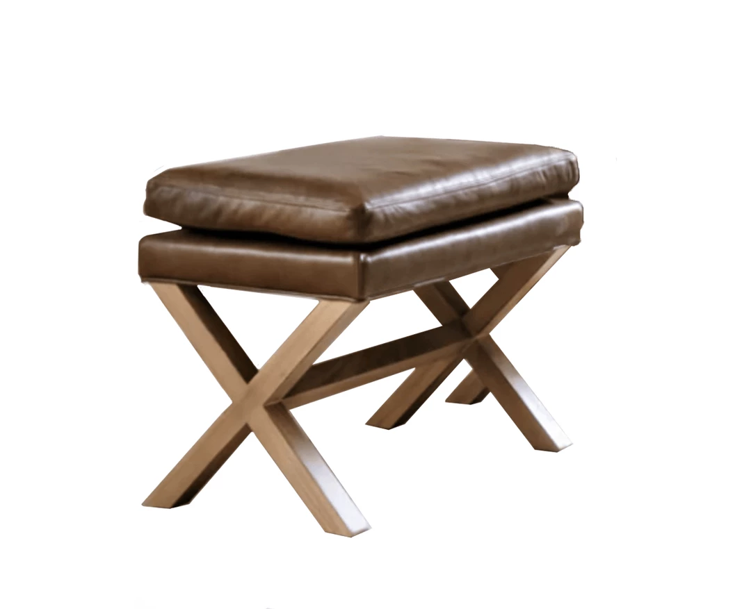 Smooth leather provides the perfect perch for snacks, tired feet or extra bodies. The low profile form is perfect in a seating arrangement in front of a television or fireplace as it allows seating but doesn’t block the view. Shown in Cromford Hide. Contact us for more leather and fabric options.