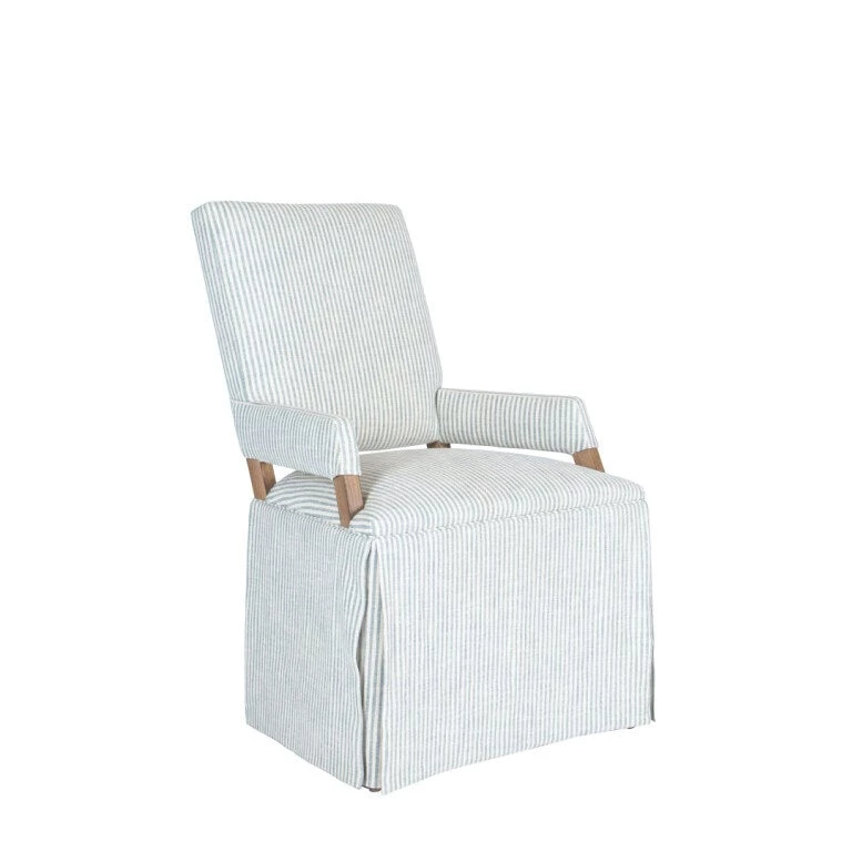 This trim accent or dining chair receives an elegant flourish with a skirted base, lending any room a stroke of statement-making finesse.