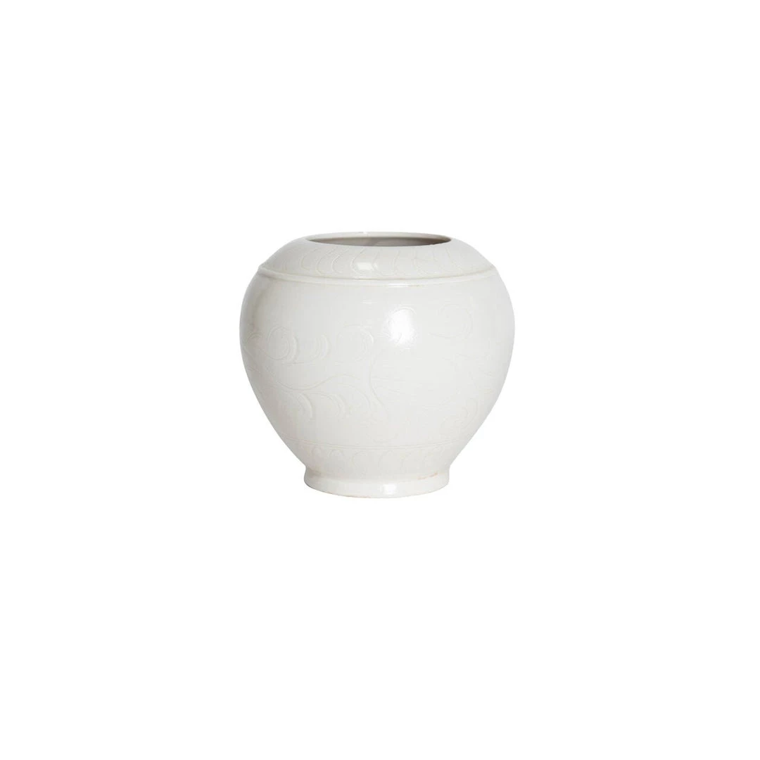 This creamy white ceramic vessel lends a cheerful disposition and earthen appeal.