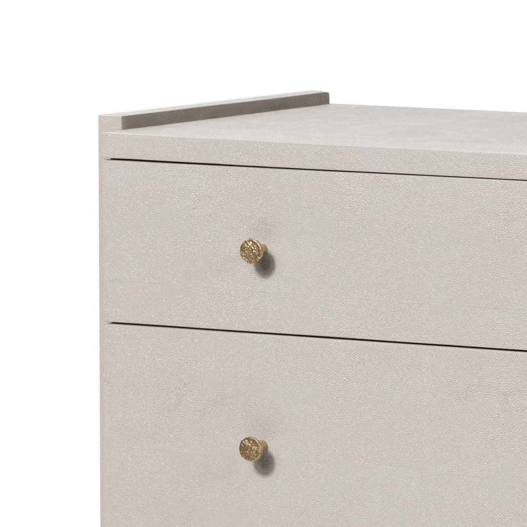 Add abstract shape and movement to a space with geometric framework and off-set drawers. This linear piece is meant to be seen from all angles.