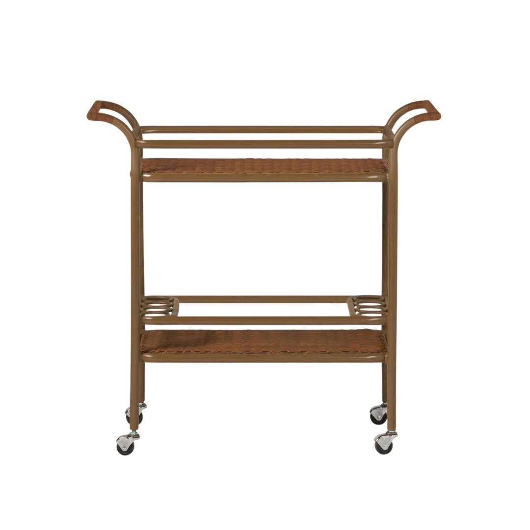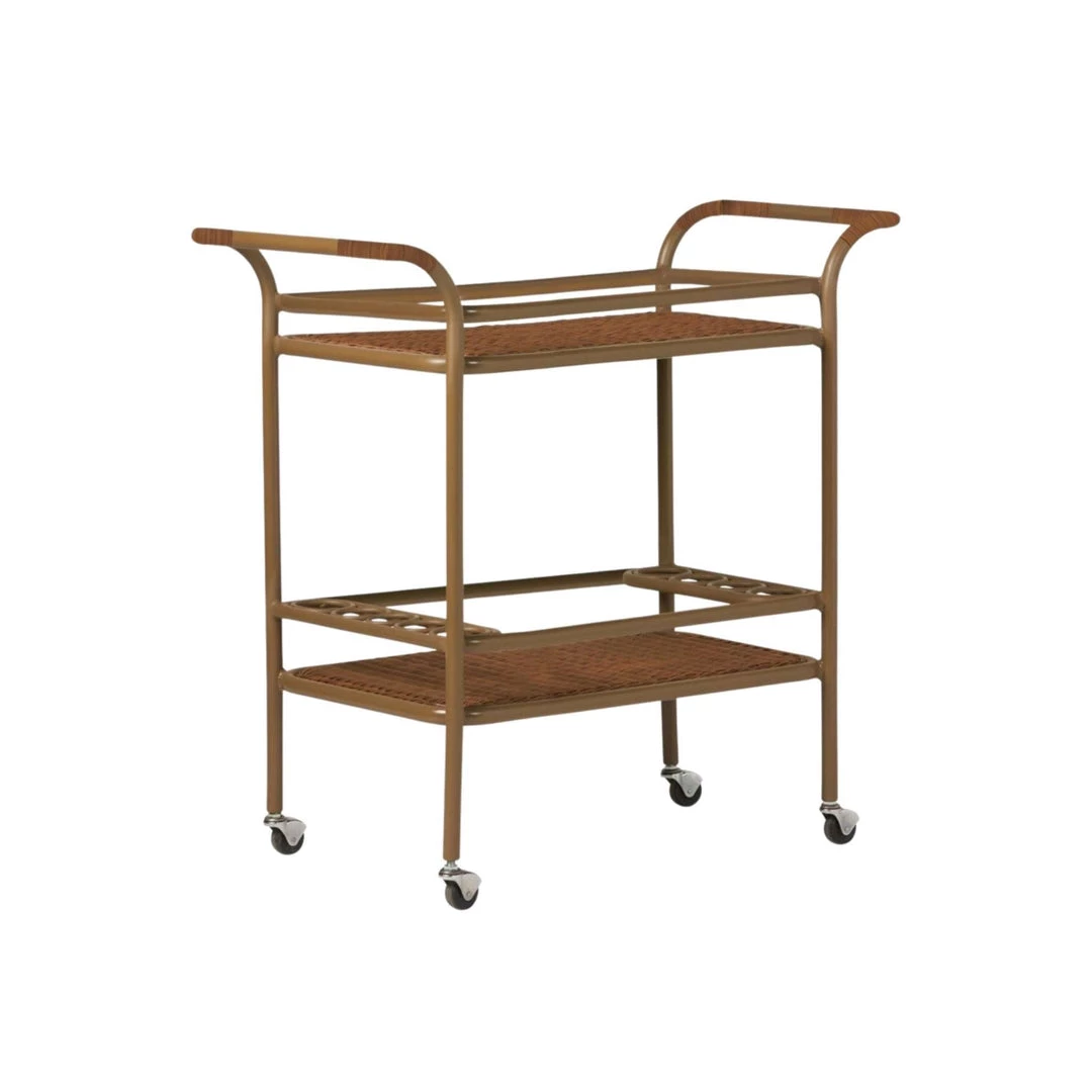 The more the merrier with this piece. The wicker bar cart features two sizable shelves with rings to store and secure up to eight bottles.