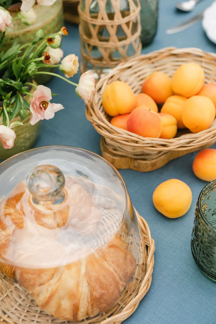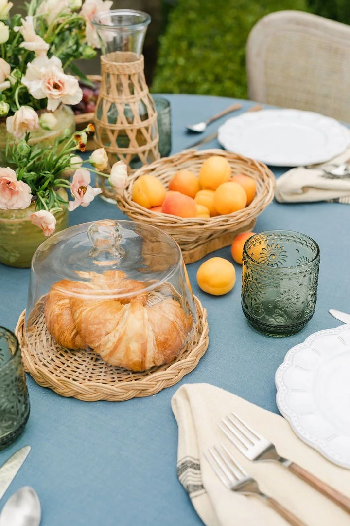 This adorable cloche with a braided wicker tray is the perfect way to store those sweet treats. A charming accessory for the traditional farmhouse kitchen. Use a slightly damp cloth to clean and never leave the wood in water.Â