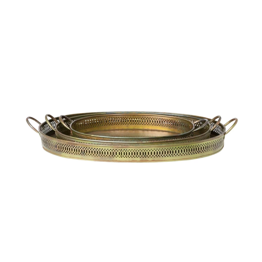 Featuring a beautiful pattern and aged patina, these serving trays are ideal for entertaining and display.Â