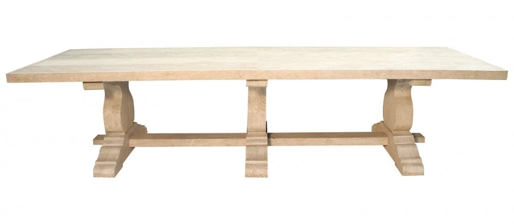 A trestle dining table for all occasions, this unique piece confers an air of provenance and gentility with its artful curves and solid stature.Â