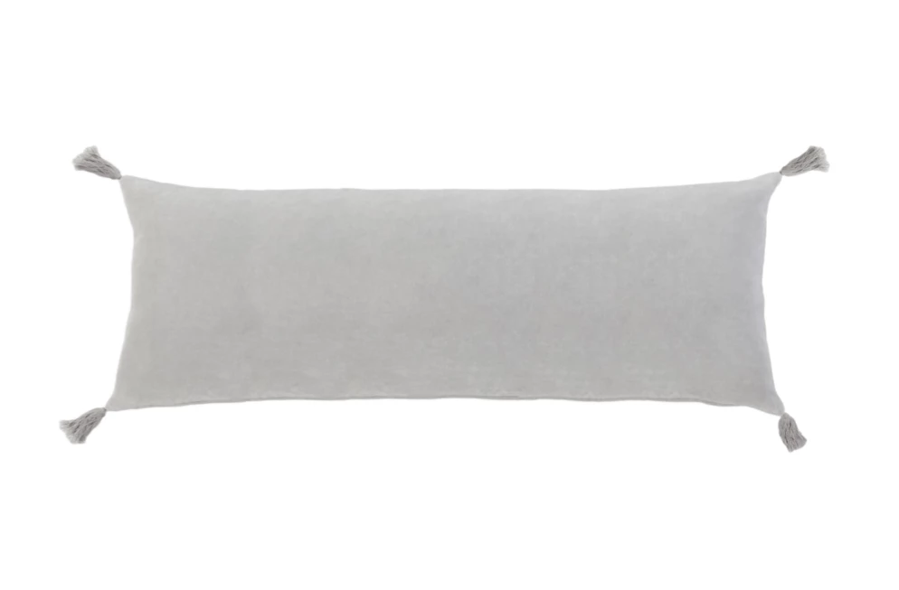 A soft velvet rectangular pillow with soft tassels on each corner, this large lumbar is perfect paired with two Euro shams.Â