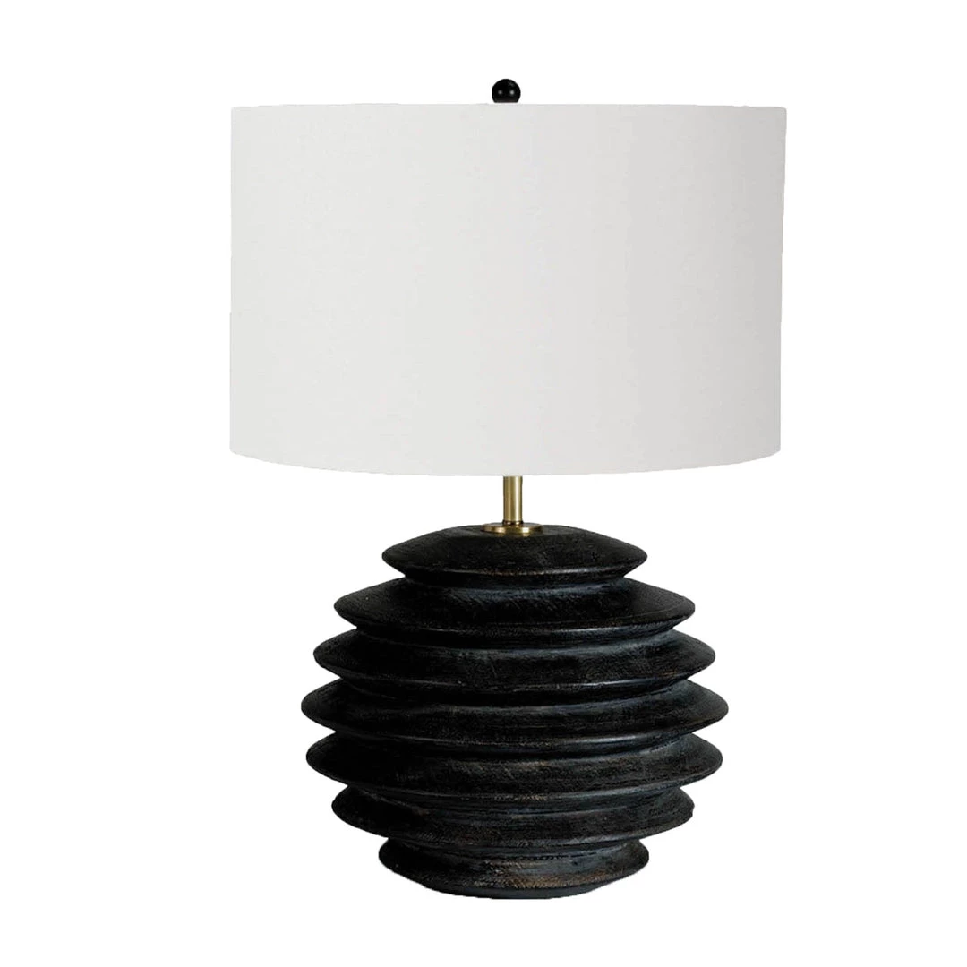 Gorgeous birch table lamp, which instantly draws in the eye with its deeply grooved body, pronounced grain and ebony finish. A white shade finishes the look with stunning contrast.