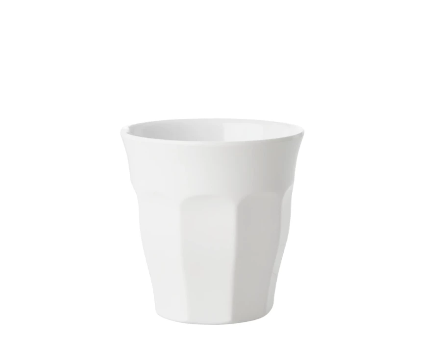 Melamine is a popular choice for cups and for good reason. This scratch-resistant material is designed for durability. The white and bright color adds classic charm to your kitchen.