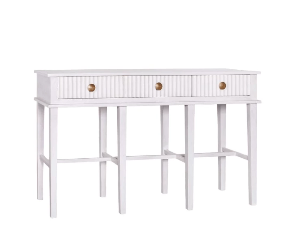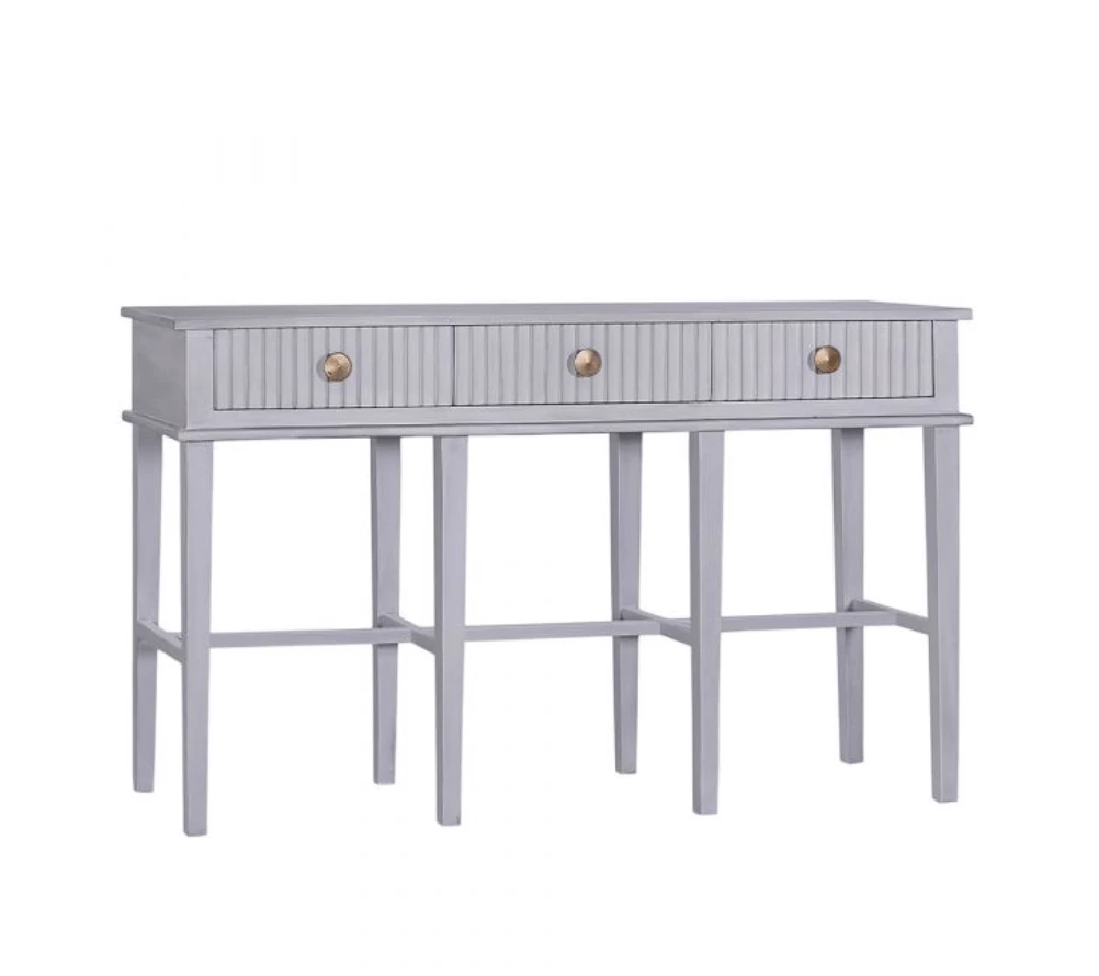 Three drawers with brass hardware make this console just as pretty as it is practical. Â