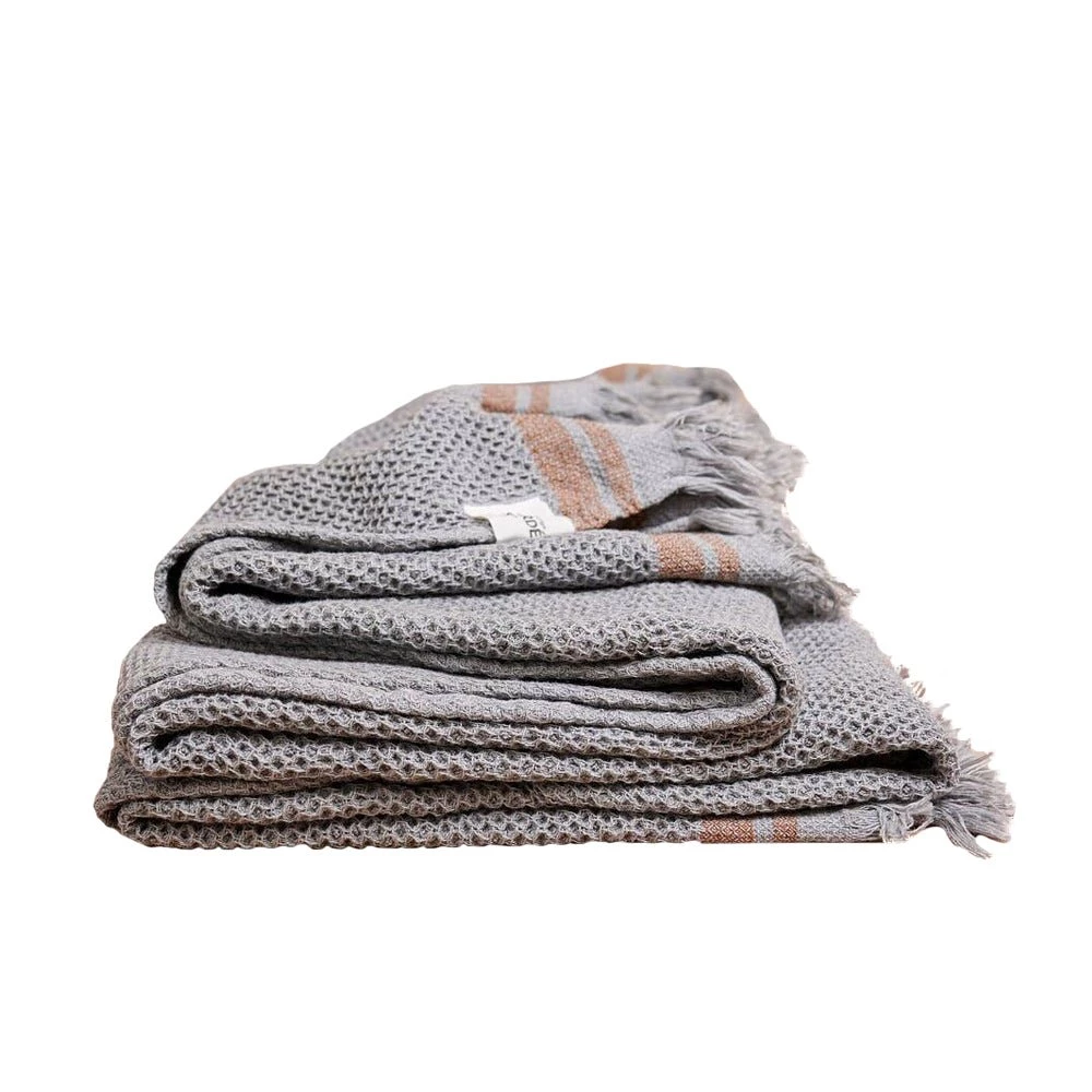 This beautifully soft throw has a honeycomb weave and fringed detailing that will fit comfortably over a bed or wrapped around you on the sofa. Perfect for any season – cosy for winter, and breathable in the summer. Made of 100% pure Turkish cotton.