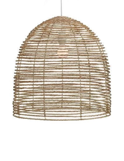 Natural strands of jute create a casual light fixture, perfect for a coastal cottage or eclectic home.