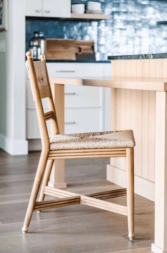 Summer style for year round living, a woven seat and back provide comfort and class with brass accents.