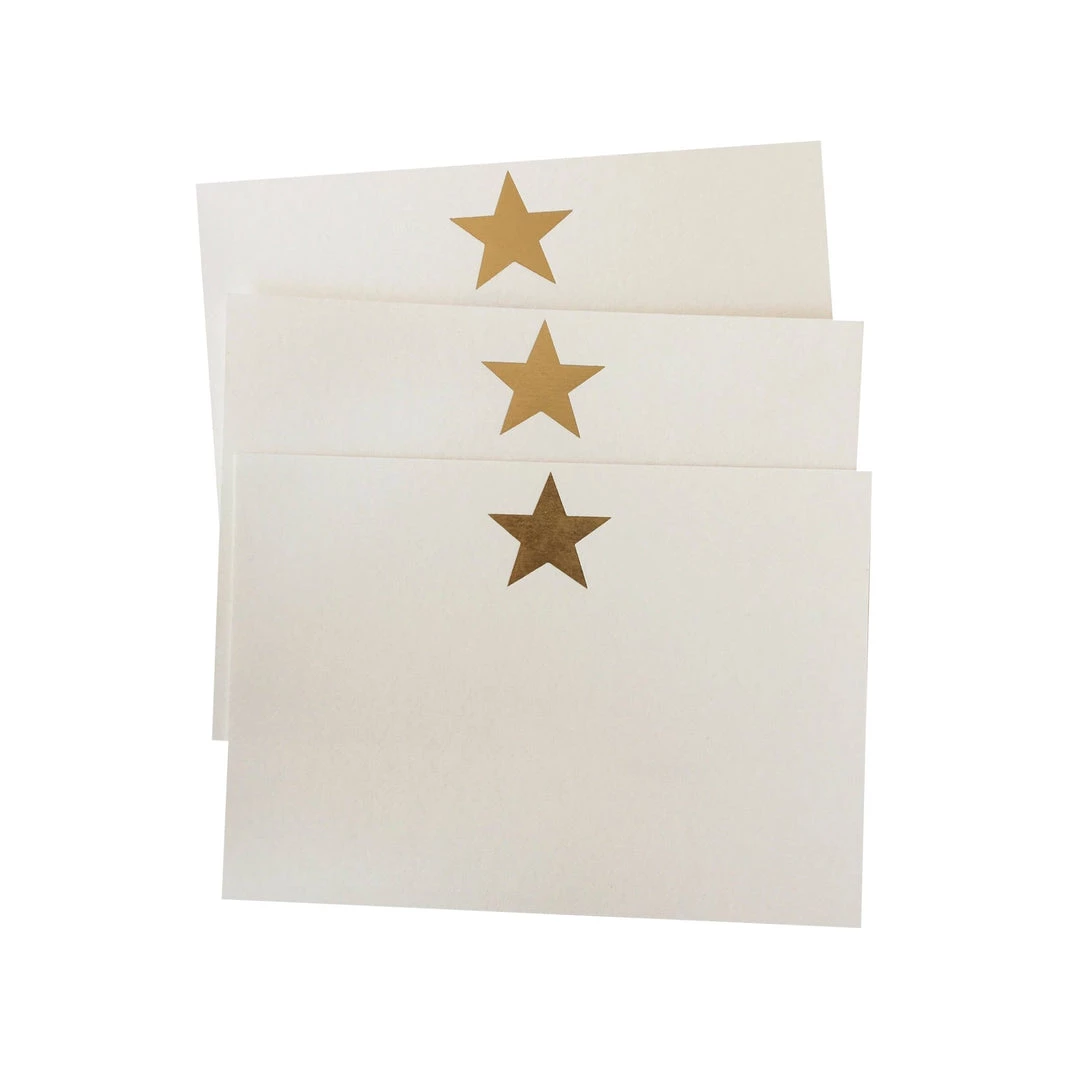 This pack consists of 10 colored note cards printed in luxurious gold foil. Each note is hand fed into the printing press creating a beautiful impression in each card.