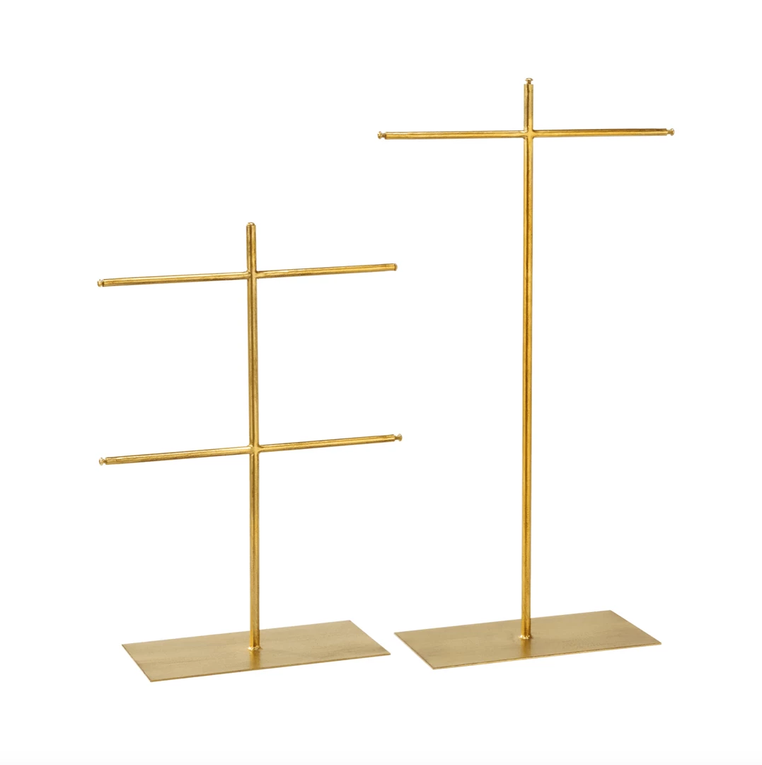 The perfectly sized metal T-bar set for displaying or organizing bracelet and necklace collections of various lengths. The tall T-bar features a full 24″ of display and the shorter T-bar features 18.5 inches of open space. Metal bars are thin enough to also hold rings. No assembly required.